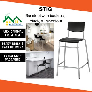 Ikea stig bar stool with backrest black silver color the stool can be stacked so you can keep several on hand and store them in the same space as one.
