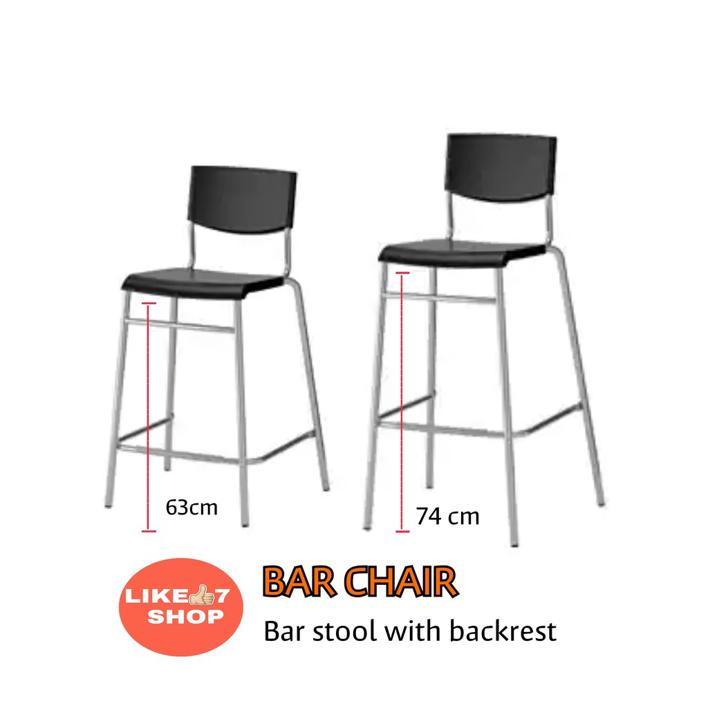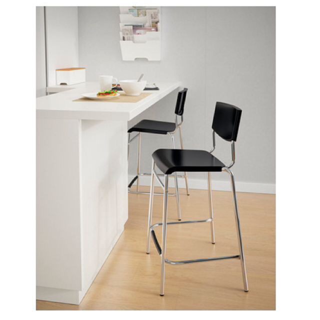 Ikea stig bar stool with backrest black silver color the stool can be stacked so you can keep several on hand and store them in the same space as one.