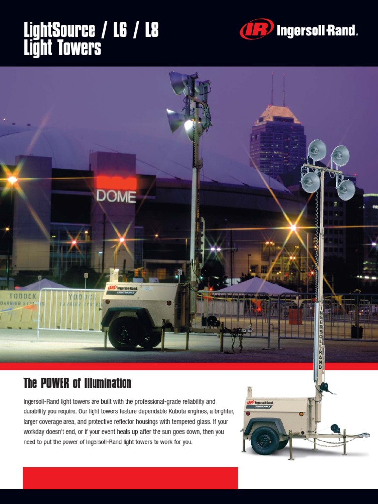 Lightsource l6 l8 light towers the power of illumination ingersoll rand light towers are built with the professional grade reliability and durability you require.
