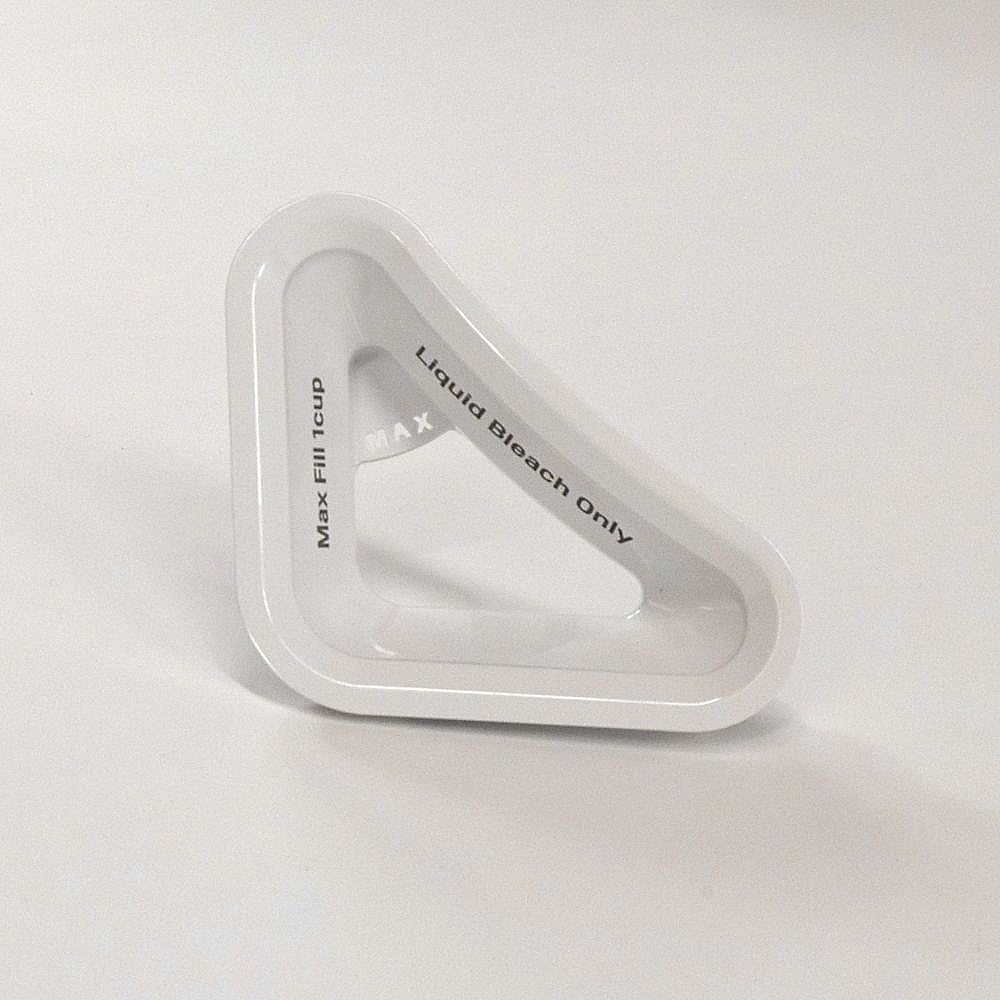 There is a bleach cup which is part of the tub cover under the bleach dispenser.